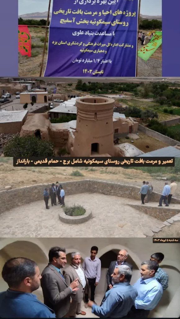 پروژه مرمت و بازسازی ابنیه تاریخی و فرهنگی در ۳ روستای شهرستان بهاباد که شامل برج قلعه، حمام و بوکن توسط اداره کل میراث فرهنگی، صنایع دستی و گردشگری استان یزد با مشارکت بنیاد علوی بنیاد مستضعفان انقلاب اسلامی به بهره برداری رسید.